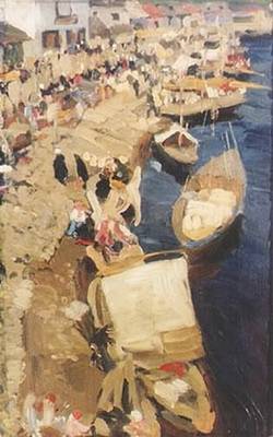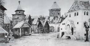 Konstantin Fyodorovich Yuon or Juon was a noted Russian painter and theatre designer associated with the Mir Iskusstva. Later, he co-founded the Union of Russian Artists and the Association of Artists of Revolutionary Russia. Yuon was born in Moscow to the family of a banking clerk of Swiss-Russian origin. From 1892 to 1898 he studied at the Moscow School of Painting, Sculpture and Architecture where Konstantin Savitsky and Konstantin Korovin were among his distinguished teachers. After graduating from the Moscow Art School he took private lessons from Valentin Serov (1898–1900). During several trips to Western Europe, particularly in Paris, he became acquainted with the cityscapes of Camille Pissarro and other Impressionists, but retained his own distinctive style. In 1900 he opened the first private painting and drawing school in Moscow. Some noted Russian painters received art education in the school (for example, Olga Zhekulina). Later he taught in Leningrad Academy of Arts and the Surikov Art Institute in Moscow. His studio in Moscow was widely used by other painters. He designed sets for plays at the Moscow Art Theatre and the Maly Theater, becoming the official designer for this theater from 1945 to 1947. He also contributed sets for operas. In the Soviet era, Yuon was the director of the Research Institute of the Academy of Arts (1948–1950) and the First Secretary of the Union of Soviet Artists (1956–1958). He won a Stalin Prize (1943), received the Order of Lenin and other orders and medals. He died in Moscow on April 11, 1958. | ![]() |