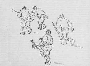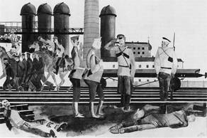 Aleksandr Aleksandrovich Deyneka (Russian: Алекса́ндр Алекса́ндрович Дейне́ка; May 20, 1899 – June 12, 1969) was a Soviet Russian painter, graphic artist and sculptor, regarded as one of the most important Russian modernist figurative painters of the first half of the 20th century. His Collective Farmer on a Bicycle (1935) has been described as exemplifying the Social Realist style.Deyneka was born in Kursk and studied at Kharkov Art College (pupil of Alexander Lubimov) and at VKhUTEMAS. He was a founding member of groups such as OST and Oktyabr, and his work gained wide exposure in major exhibitions. His paintings and drawings (the earliest are often monochrome due to the shortage of art supplies) depict genre scenes as well as labour and often sports. Deyneka later began painting monumental works, such as The Defence of Petrograd in 1928, which remains his most iconic painting, and The Battle of Sevastopol in 1942, The Outskirts of Moscow. November 1941 and The Shot-Down Ace. His mosaics are a feature of Mayakovskaya metro station in Moscow. He is in the highest category '1A - a world famous artist' in 'United Artists Rating'.Deyneka is buried in the Novodevichy Cemetery in Moscow. |  |
