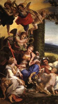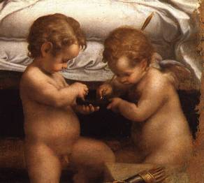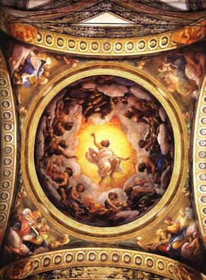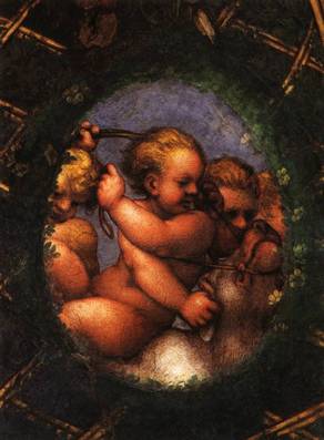 Antonio Allegri da Correggio (August 1489 – March 5, 1534), usually known as Correggio, was the foremost painter of the Parma school of the Italian Renaissance, who was responsible for some of the most vigorous and sensuous works of the 16th century. In his use of dynamic composition, illusionistic perspective and dramatic foreshortening, Correggio prefigured the Rococo art of the 18th century. He is considered a master of chiaroscuro. Antonio Allegri was born in Correggio, Italy, a small town near Reggio Emilia. His date of birth is uncertain (around 1489). His father was a merchant. Otherwise little is known about Correggio's early life or training. It is, however, often assumed that he had his first artistic education from his father's brother, the painter Lorenzo Allegri. In 1503–5 he was apprenticed to Francesco Bianchi Ferrara in Modena, where he probably became familiar with the classicism of artists like Lorenzo Costa and Francesco Francia, evidence of which can be found in his first works. After a trip to Mantua in 1506, he returned to Correggio, where he stayed until 1510. To this period is assigned the Adoration of the Child with St. Elizabeth and John, which shows clear influences from Costa and Mantegna. In 1514 he probably finished three tondos for the entrance of the church of Sant'Andrea in Mantua, and then returned to Correggio, where, as an independent and increasingly renowned artist, he signed a contract for the Madonna altarpiece in the local monastery of St. Francis (now in the Dresden Gemäldegalerie). |  |