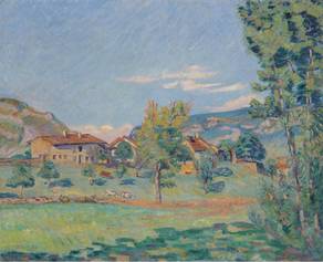 Intense colours. He is best remembered for his landscapes of Paris, the Creuse département, and the area around Les Adrets-de-l`Estérel near the Mediterranean coast in the Provence-Alpes-Côte d`Azur region of France. Guillamin was called the leader of the École de Crozant, a diverse group of painters who came to depict the landscape in the region of the Creuse around the village of Crozant. One of these depictions, titled Landscape in Crozant, is housed in the Chicago Institute of Arts. |  |