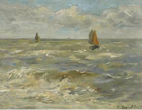 One of the first French landscape painters to paint outdoors. Boudin was a marine painter, and expert in the rendering of all that goes upon the sea and along its shores. His pastels, summary and economic, garnered the splendid eulogy of Baudelaire; and Corot called him the "king of the skies". |  |
