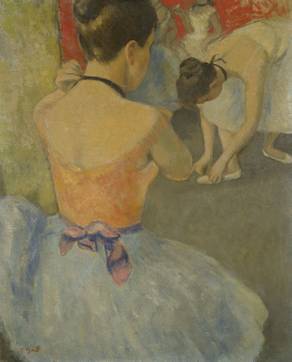 Ballerine Marie-Lize behind the Curtains Preparing to Dance