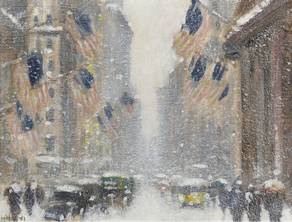 Famous for his paintings of New York City's snowy streets, landmarks and towering skyscrapers during winter.