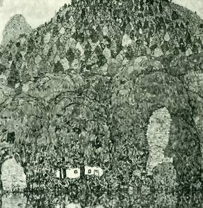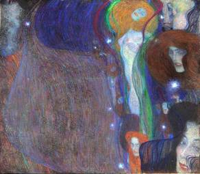 Early in his artistic career he was a successful painter of architectural decorations in a conventional manner. As he developed a more personal style, his work was the subject of controversy that culminated when the paintings he completed around 1900 for the ceiling of the Great Hall of the University of Vienna were criticized as pornographic. He subsequently accepted no more public commissions, but achieved a new success with the paintings of his `golden phase`, many of which include gold leaf. Klimt`s work was an important influence on his younger contemporary Egon Schiele. |  |