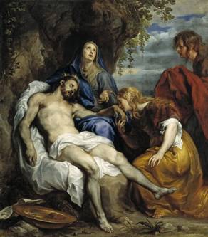 Flemish Baroque artist who became the leading court painter in England, after enjoying great success in Italy and Flanders. He is most famous for his portraits of Charles I of England and his family and court, painted with a relaxed elegance that was to be the dominant influence on English portrait-painting for the next 150 years. He also painted biblical and mythological subjects, displayed outstanding facility as a draughtsman, and was an important innovator in watercolour and etching. The Van Dyke beard is named after him. |
