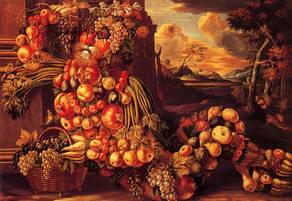 Italian painter best known for creating imaginative portrait heads made entirely of objects such as fruits, vegetables, flowers, fish, and books. Arcimboldo is known as a 16th-century Mannerist. A transitional period from 1520 to 1590, Mannerism adopted some artistic elements from the High Renaissance and influenced other elements in the Baroque period. A Mannerist tended to show close relationships between human and nature. Arcimboldo also tried to show his appreciation of nature through his portraits. In The Spring, the human portrait was composed of only various spring flowers and plants. From the hat to the neck, every part of the portrait, even the lips and nose, was composed of flowers, while the body was composed of plants. On the other hand, in The Winter, the human was composed mostly of roots of trees. Some leaves from evergreen trees and the branches of other trees became hair, while a straw mat became the costume of the human portrait. | ![]() |