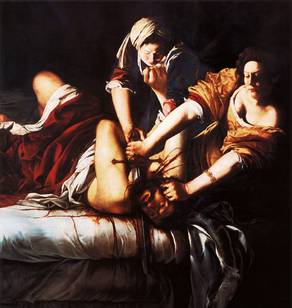 Today considered one of the most accomplished painters in the generation following that of Caravaggio. In an era when women painters were not easily accepted by the artistic community or patrons, she was the first woman to become a member of the Accademia di Arte del Disegno in Florence. She painted many pictures of strong and suffering women from myth and the Bible – victims, suicides, warriors. Her best-known work is Judith Slaying Holofernes (a well-known medieval and baroque subject in art), which "shows the decapitation of Holofernes, a scene of horrific struggle and blood-letting". | ![]() |