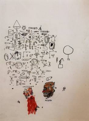 Basquiat used social commentary in his paintings as a "springboard to deeper truths about the individual", as well as attacks on power structures and systems of racism, while his poetics were acutely political and direct in their criticism of colonialism and support for class struggle. He died of a heroin overdose at his art studio at age 27. |  |