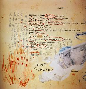 Basquiat`s art focused on "suggestive dichotomies", such as wealth versus poverty, integration versus segregation, and inner versus outer experience. He appropriated poetry, drawing, and painting, and married text and image, abstraction, and figuration, and historical information mixed with contemporary critique.