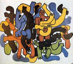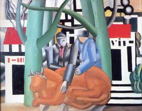 In his early works he created a personal form of cubism which he gradually modified into a more figurative, populist style. His boldly simplified treatment of modern subject matter has caused him to be regarded as a forerunner of pop art. Léger displays a personal form of Cubism that his critics termed "Tubism" for its emphasis on cylindrical forms. | ![]() |