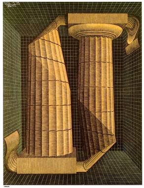 His work features mathematical objects and operations including impossible objects, explorations of infinity, reflection, symmetry, perspective, truncated and stellated polyhedra, hyperbolic geometry, and tessellations. Although Escher considered that he had no mathematical ability, he interacted with mathematicians George Pólya, Roger Penrose, and Harold Coxeter; read mathematical papers by these authors and by the crystallographer Friedrich Haag; and conducted his own original research into tessellation. |  |