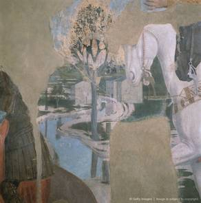 Adorazione della Croce e incontro tra Salomone e la Regina di Saba (dettaglio 61), affresco, 336 cm Vittoria di Costantino su Massenzio (dettaglio 30), affresco (322 x 764 cm), Basilica di San Frances Vittoria di Costantino su Massenzio (dettaglio 27), affresco (322 x 764 cm), Basilica di San Frances Battaglia di Eraclio e Cosroe (dettaglio 6), c. 1455, affresco, 329 x 747 cm, Basilica di San France | | |