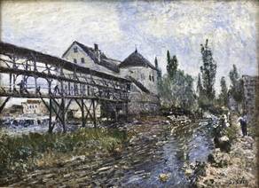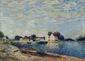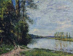 Alfred Sisley was an Impressionist landscape painter who was born and spent most of his life in France, but retained British citizenship. He was the most consistent of the Impressionists in his dedication to painting landscape en plein air (i.e., outdoors). He deviated into figure painting only rarely and, unlike Renoir and Pissarro, found that Impressionism fulfilled his artistic needs. Among his important works are a series of paintings of the River Thames, mostly around Hampton, executed in 1874, and landscapes depicting places in or near Moret-sur-Loing. The notable paintings of the Seine and its bridges in the former suburbs of Paris are like many of his landscapes, characterized by tranquility, in pale shades of green, pink, purple, dusty blue and cream. Over the years the power of expression and color intensity increased within Sisley`s paintings. | ![]() |