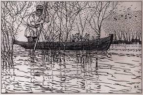 Boris Mikhaylovich Kustodiev was a Russian painter and stage designer. Boris studied in theological seminary and took private art lessons in Astrakhan from Pavel Vlasov, a pupil of Vasily Perov. Subsequently, from 1896 to 1903, he attended Ilya Repin’s studio at the Imperial Academy of Arts in St. Petersburg.Concurrently, he took classes in sculpture under Dmitry Stelletsky and in etching under Vasiliy Mate. He first exhibited in 1896 When Repin was commissioned to paint a large-scale canvas to commemorate the 100th anniversary of the State Council, he invited Kustodiev to be his assistant. The painting was extremely complex and involved a great deal of hard work. Together with his teacher, the young artist made portrait studies for the painting, and then executed the right-hand side of the final work. He visited France and Spain on a grant from the Imperial Academy of Arts in 1904. Also in 1904, he attended the private studio of René Ménard in Paris. After that he traveled to Spain, then, in 1907, to Italy, and in 1909 he visited Austria and Germany, and again France and Italy. During these years he painted many portraits and genre pieces. However, no matter where Kustodiev happened to be – in sunny Seville or in the park at Versailles – he felt the irresistible pull of his motherland. After five months in France he returned to Russia, writing with evident joy to his friend Mate that he was back once more in our blessed Russian land. In 1905, Kustodiev first turned to book illustrating, a genre in which he worked throughout his entire life. He illustrated many works of classical Russian literature, including Nikolai Gogol`s Dead Souls, The Carriage, and The Overcoat; Mikhail Lermontov`s The Lay of Tsar Ivan Vasilyevich, His Young Oprichnik and the Stouthearted Merchant Kalashnikov; and Leo Tolstoy`s How the Devil Stole the Peasants Hunk of Bread and The Candle. His Pancake Tuesday/Maslenitsa (1916) and Fontanka (1916) are all painted from his memories. He meticulously restores his own childhood in the busy city on the Volga banks. | ![]() |