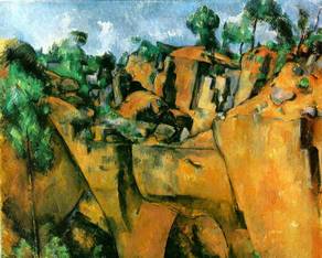 Cezanne`s early work is often concerned with the figure in the landscape and includes many paintings of groups of large, heavy figures in the landscape, imaginatively painted. Later in his career, he became more interested in working from direct observation and gradually developed a light, airy painting style. Nevertheless, in Cezanne`s mature work there is the development of a solidified, almost architectural style of painting. Throughout his life he struggled to develop an authentic observation of the seen world by the most accurate method of representing it in paint that he could find. To this end, he structurally ordered whatever he perceived into simple forms and colour planes. His statement "I want to make of impressionism something solid and lasting like the art in the museums", and his contention that he was recreating Poussin "after nature" underscored his desire to unite observation of nature with the permanence of classical composition.