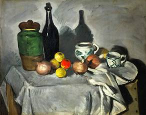 He concentrated on a few subjects and was equally proficient in each of these genres: still lifes, portraits, landscapes and studies of bathers. For the last, Cezanne was compelled to design from his imagination, due to a lack of available nude models. Like the landscapes, his portraits were drawn from that which was familiar, so that not only his wife and son but local peasants, children and his art dealer served as subjects. His still lifes are at once decorative in design, painted with thick, flat surfaces, yet with a weight reminiscent of Gustave Courbet. The `props` for his works are still to be found, as he left them, in his studio (atelier), in the suburbs of modern Aix.