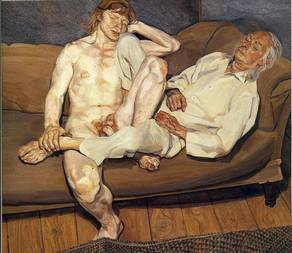 Lucian Michael Freud (8 December 1922 – 20 July 2011) was a German-born British painter. Known chiefly for his thickly impastoed portrait and figure paintings, he was widely considered the pre-eminent British artist of his time. His works are noted for their psychological penetration and their often discomforting examination of the relationship between artist and model. Born in Berlin, Freud was the son of a German Jewish mother, Lucie (nee Brasch), and an Austrian Jewish father, Ernst L. Freud, an architect. He was a grandson of Sigmund Freud, and elder brother of the broadcaster, writer and politician Clement Freud (thus uncle of Emma and Matthew Freud) and the younger brother of Stephan Gabriel Freud. He moved with his family to St John`s Wood, London, in 1933 to escape the rise of Nazism. He became a British subject in 1939, having attended Dartington Hall School in Totnes, Devon, and later Bryanston School, for a year before being expelled due to disruptive behaviour. Freud briefly studied at the Central School of Art in London, and from 1939 to 1942 with greater success at Cedric Morris` East Anglian School of Painting and Drawing in Dedham, relocated in 1940 to Benton End, a house near Hadleigh, Suffolk. He also attended Goldsmiths` College, part of the University of London, in 1942–43. He served as a merchant seaman in an Atlantic convoy in 1941 before being invalided out of service in 1942. In 1943, the poet and editor Meary James Thurairajah Tambimuttu commissioned the young artist to illustrate a book of poems by Nicholas Moore entitled The Glass Tower. It was published the following year by Editions Poetry London and comprised, among other drawings, a stuffed zebra and a palm tree. Both subjects reappeared in The Painter`s Room on display at Freud`s first solo exhibition in 1944 at the Alex Reid & Lefevre Gallery. In the summer of 1946, he travelled to Paris before continuing to Greece for several months to visit John Craxton. In the early fifties he was a frequent visitor to Dublin where he would share Patrick Swift`s studio. In late 1952, Freud and Lady Caroline Blackwood eloped to Paris where they married in 1953. He otherwise lived and worked in London for the rest of his life. Freud was part of a group of figurative artists that American artist Ronald Kitaj later named "The School of London". This was more a loose collection of individual artists who knew each other, some intimately, and were working in London at the same time in the figurative style (but during the boom years of abstract painting). The group was led by figures such as Francis Bacon and Freud, and included Frank Auerbach, Michael Andrews, Leon Kossoff, Robert Colquhoun, Robert MacBryde, Reginald Gray and Kitaj himself. He was a visiting tutor at the Slade School of Fine Art of University College London from 1949 to 1954. Freud`s early paintings, which are mostly very small, are often associated with German Expressionism (an influence he tended to deny) and Surrealism in depicting people, plants and animals in unusual juxtapositions. Some very early works anticipate the varied flesh tones of his mature style, for example Cedric Morris (1940, National Museum of Wales), but after the end of the war he developed a thinly painted very precise linear style with muted colours, best known in his self-portrait Man with Thistle (1946, Tate) and a series of large-eyed portraits of his first wife, Kitty Garman, such as Girl with a Kitten (1947, Tate). These were painted with tiny sable brushes and evoked Early Netherlandish painting. From the 1950s, he began to work in portraiture, often nudes (though his first full length nude was not painted until 1966), to the almost complete exclusion of everything else, and by the middle of the decade developed a much more free style using large hogs-hair brushes, with an intense concentration of the texture and colour of flesh, and much thicker paint, including impasto. Girl with a white dog, 1951–1952, (Tate) is an example of a transitional work in this process, sharing many characteristics with paintings before and after it, with relatively tight brushwork and a middling size and viewpoint. With this technique, he would often clean his brush after each stroke when painting flesh, so that the colour remained constantly variable. He also started to paint standing up, which continued until old age, when he switched to a high chair. The colours of non-flesh areas in these paintings are typically muted, while the flesh becomes increasingly highly and variably coloured. By about 1960, Freud had established the style that he would use, with some changes, for the rest of his career. The portraits in the new style often used an over life-size scale from the start, but were mostly relatively small heads or half-lengths. Later portraits were often very much larger, and appealed to galleries and collectors. In his late career he often followed a portrait by producing an etching of the subject in a different pose, drawing directly onto the plate, with the sitter in his view. "I paint people," Freud said, "not because of what they are like, not exactly in spite of what they are like, but how they happen to be." Freud painted fellow artists, including Frank Auerbach and Francis Bacon. He produced a series of portraits of the performance artist Leigh Bowery, and also painted Henrietta Moraes, a muse to many Soho artists. A series of huge nude portraits from the mid-1990s depicted the very large Sue Tilley, or "Big Sue", some using her job title of "Benefits Supervisor" in the title of the painting, as in his 1995 portrait Benefits Supervisor Sleeping, which in May 2008 was sold by Christie`s in New York for $33.6 million, setting a world record auction price for a living artist. Freud`s most consistent model in his later years was his studio assistant and friend David Dawson, the subject of his final, unfinished work. Towards the end of his life he did a nude portrait of model Kate Mo