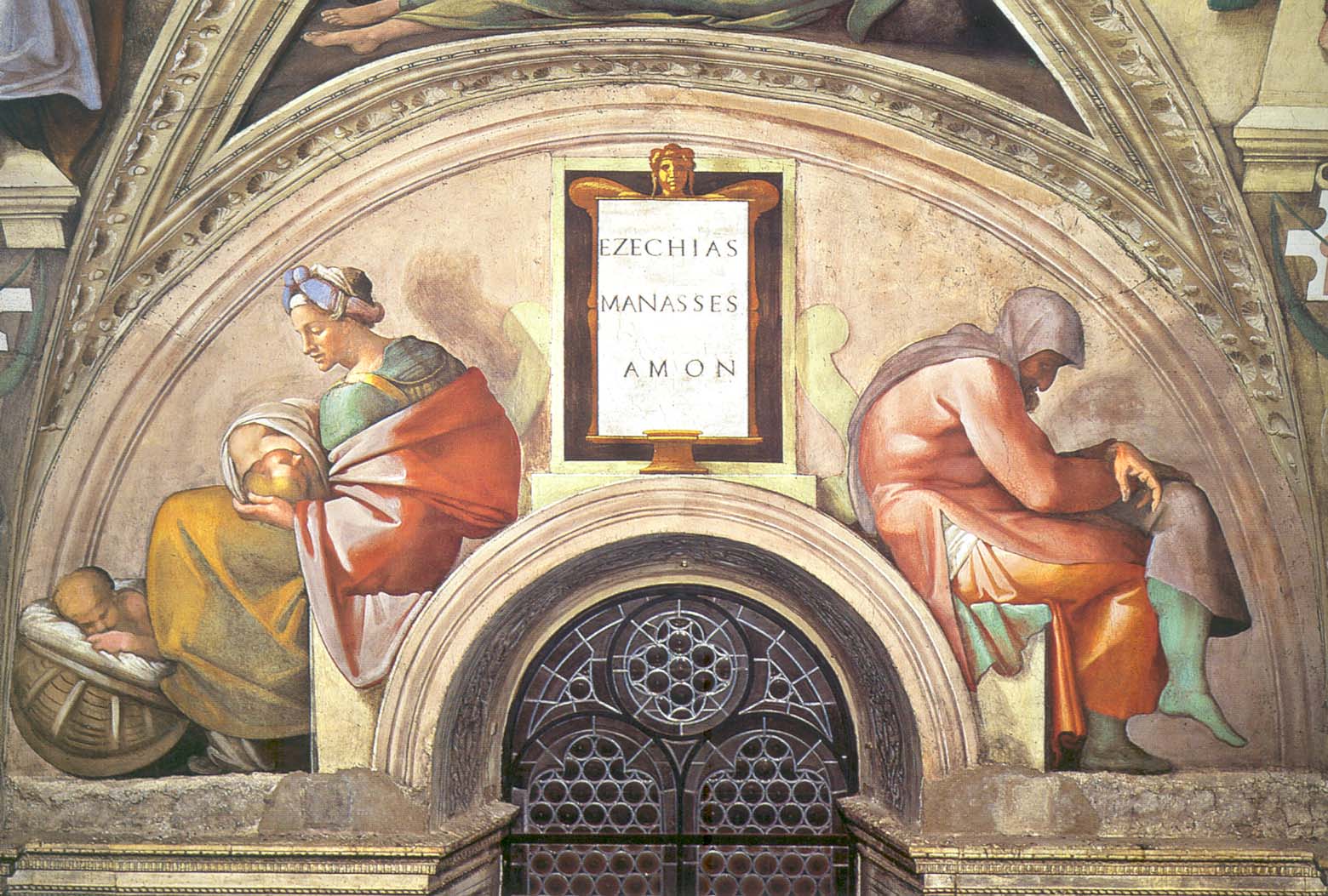 Езекия, Манассия и Амон (потолок Сикстинской Капеллы, ф [1508—1512] (Сикстинская Kапелла, Ватикан)