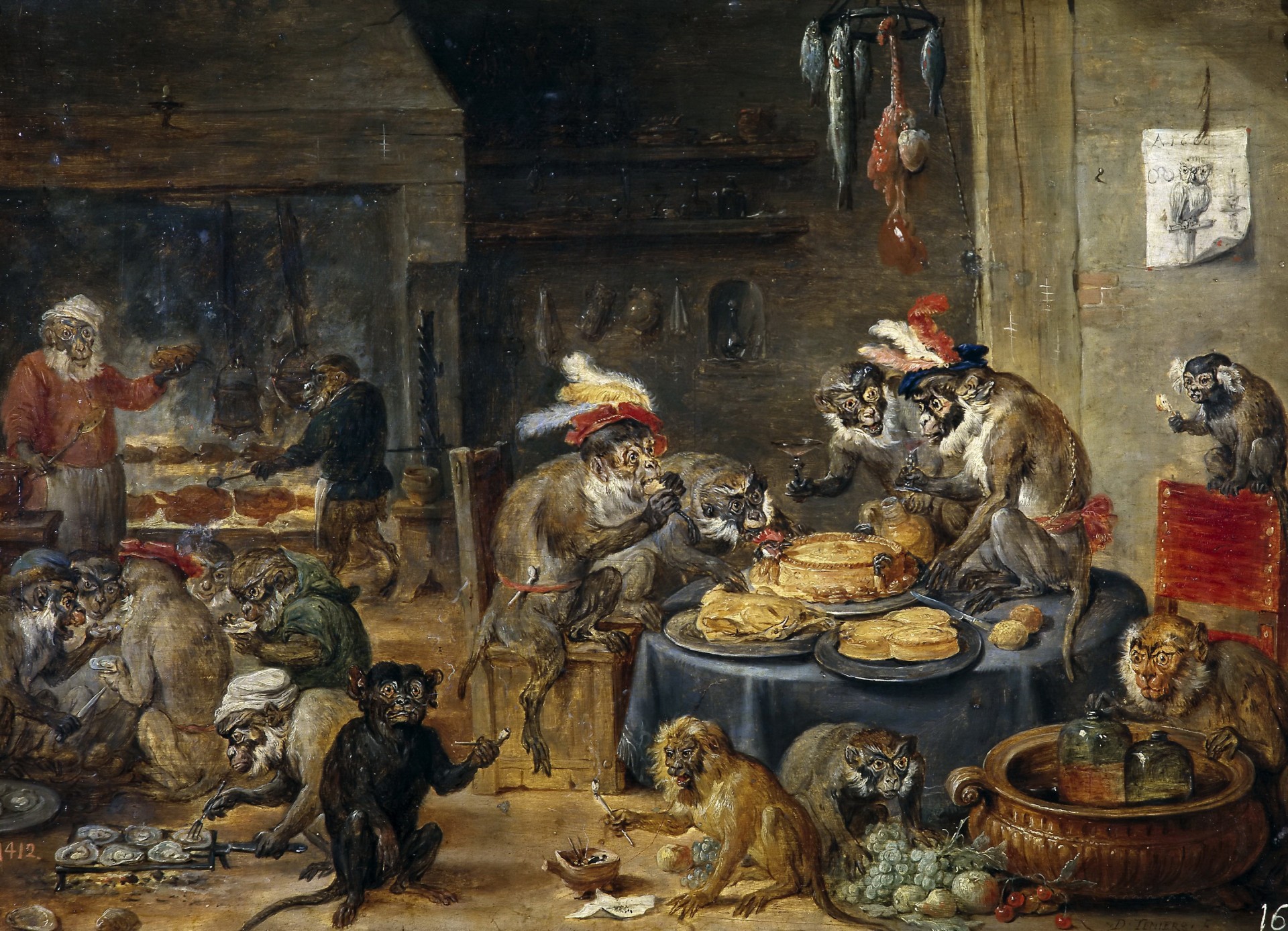 Obezyaniy banket, 1660, 25 sm x 34 sm, panel, maslo