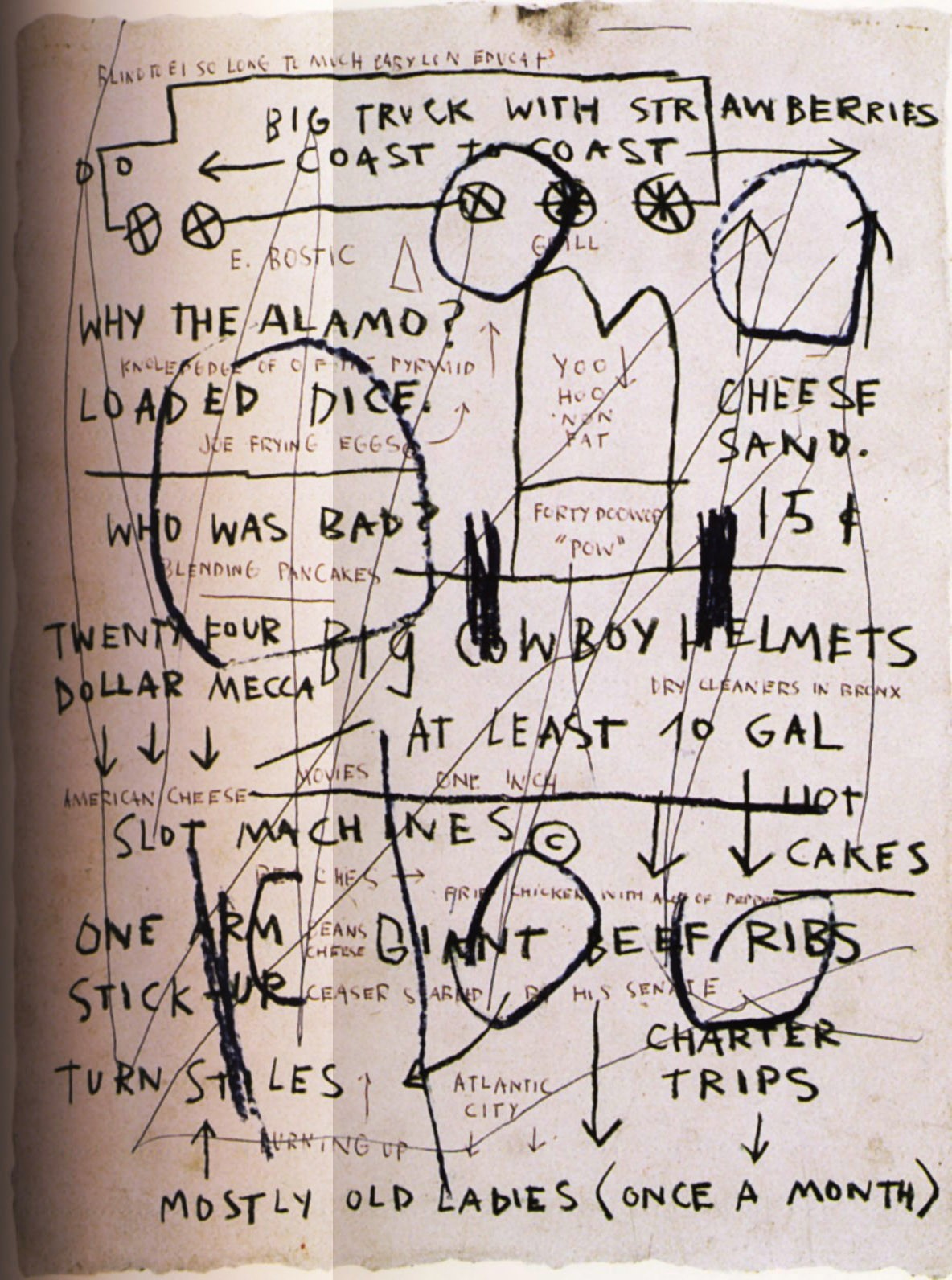 1982 J.M. Basquiat Sans Titre (Mostly Old Ladies) Crayon gras et stylo a bille sur papier 50,8