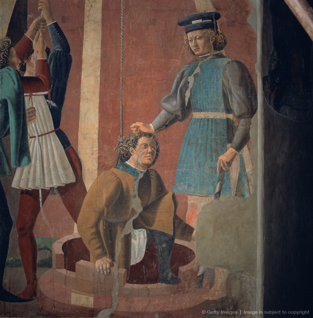 Tortura dellebreo (dettaglio), c. 1455, fresco, 356 x 193 cm, Basilica di San Francesco, Arezzo